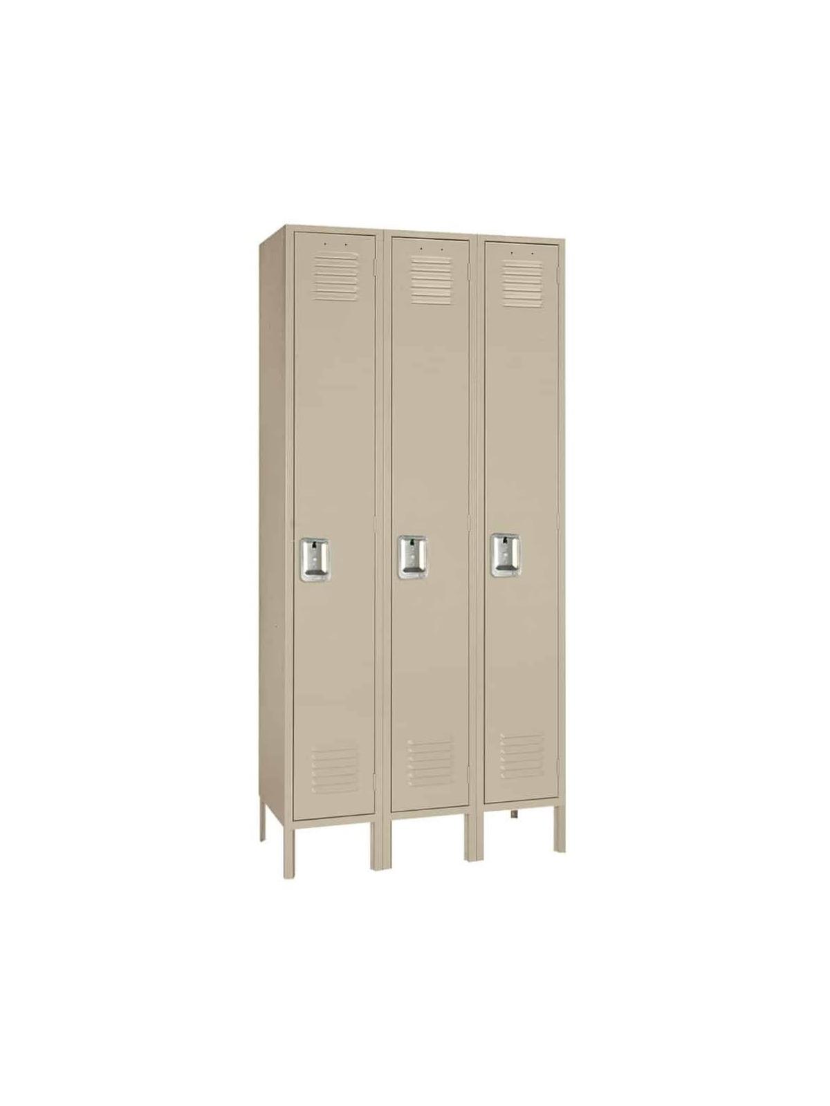 Single Tier Lockers - Features steel recessed handle and hooks for hanging clothing and other items. Single tier lockers also include a separate shelf.