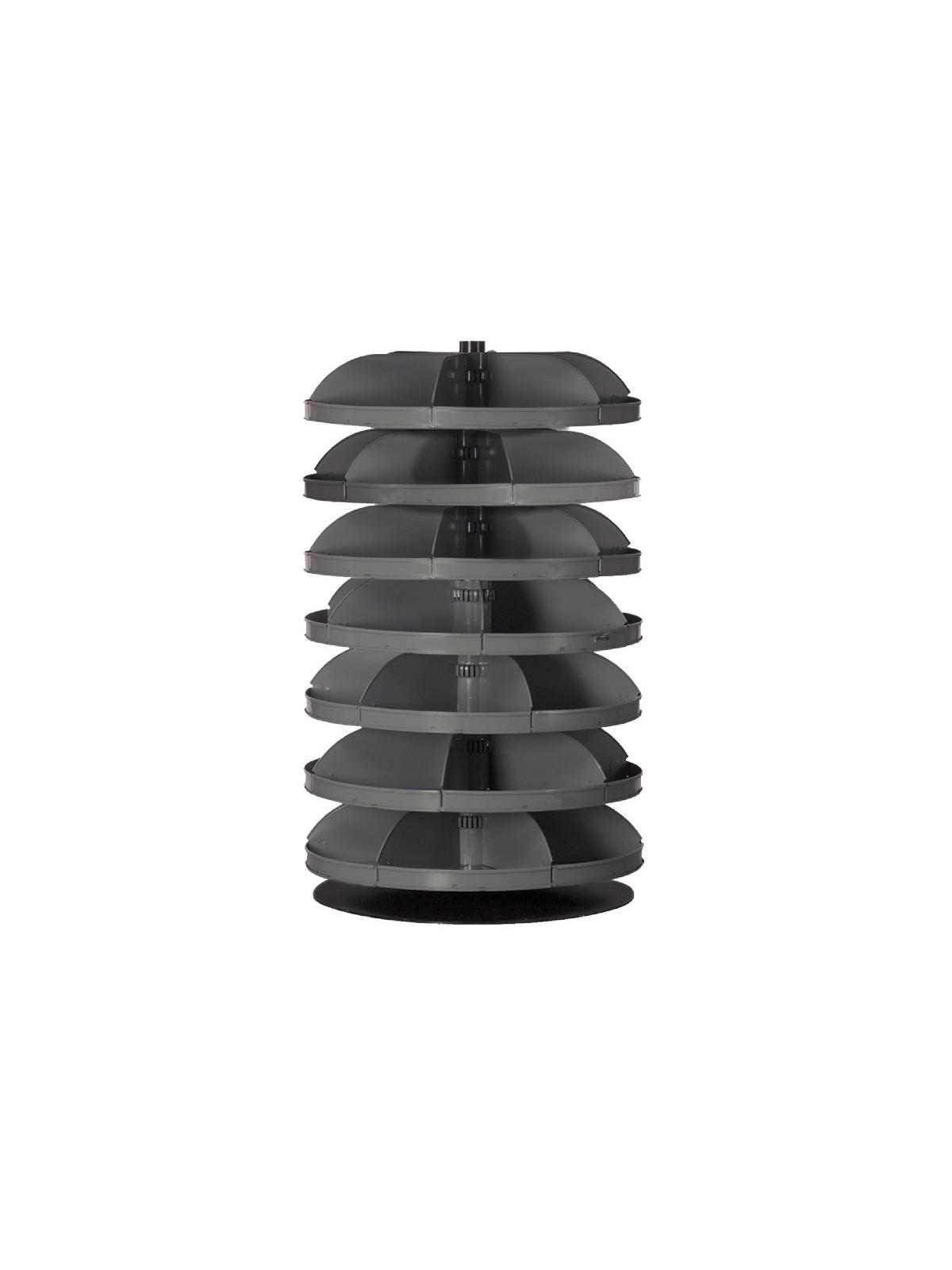 When space is at a premium, Rotabin® is the answer. Revolving shelves turn easily, independently...even when fully loaded. Made of heavy gauge steel for hard daily use. Available in Gray powder coat. FOB Shipping Point.