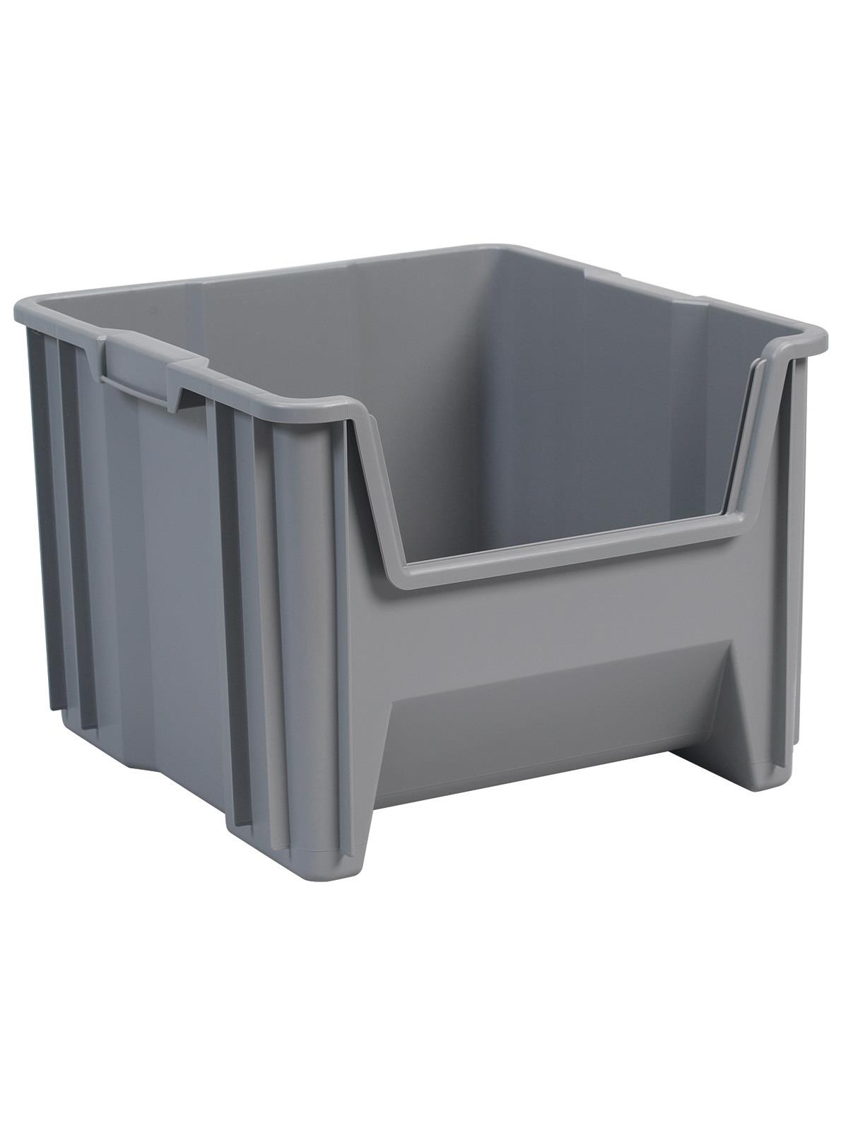 • Bins stack to form tall, stable storage arrangements on floors or standard shelving.