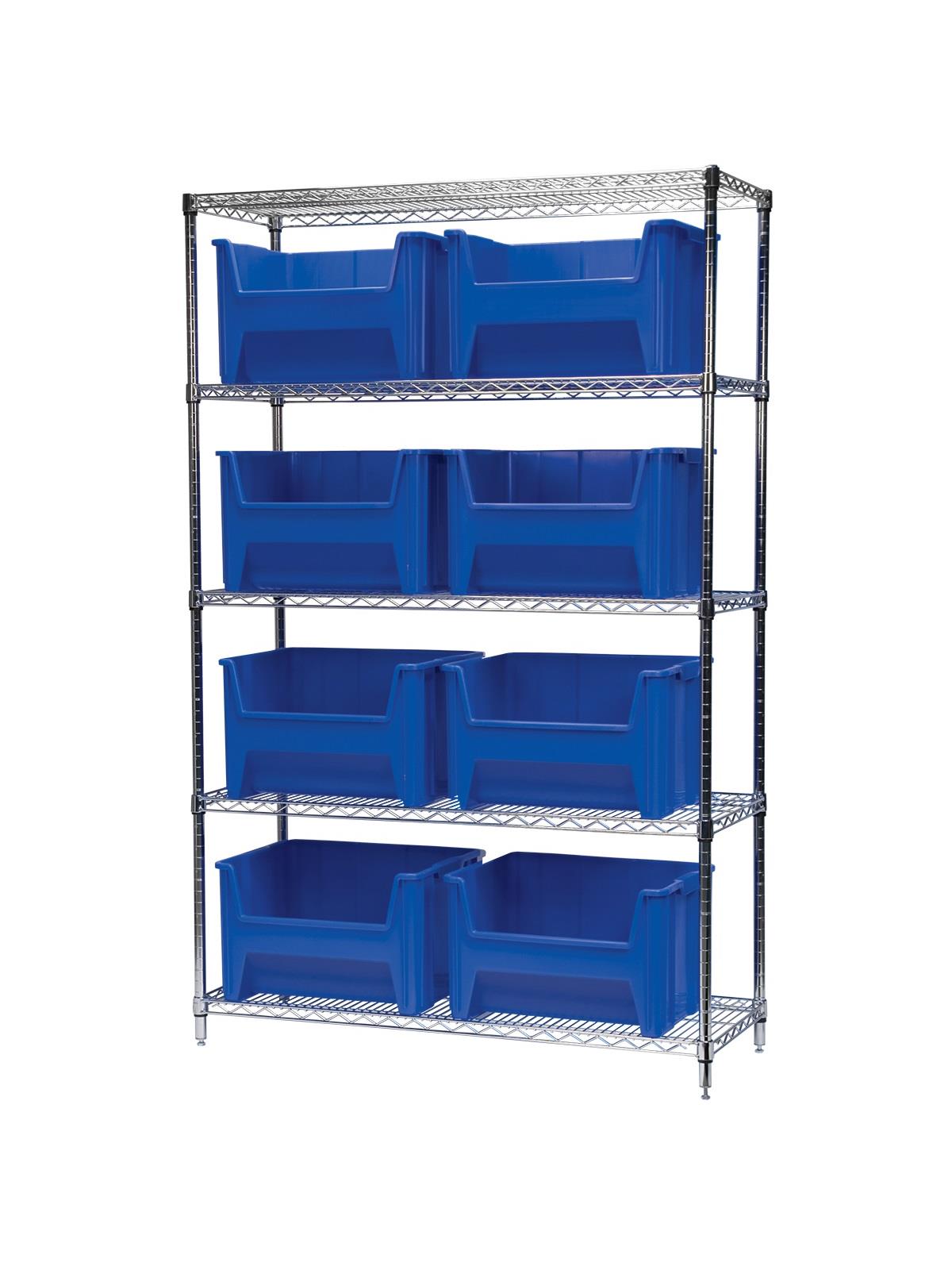 Available with shelves and come with 8, 9 or 12 bins. Bins feature a wide hopper front for easy access. Bins available in Blue, Red, or Gray. FOB Shipping Point.