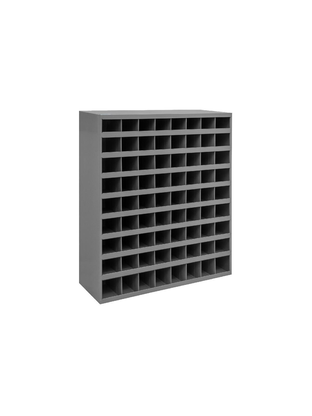 Roll-formed sides for increased strength and stability. Newly redesigned slope shelves. Ribbed and hemmed dividers provide added strength. Optional base available. Ships fully assembled ready for use. Durable gray powder coat finish. FOB Shipping Point.