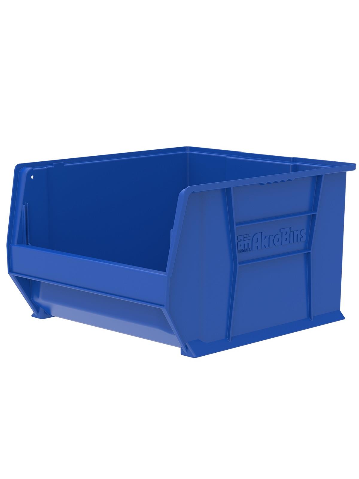- Heavy-duty bins securely stack atop each other -- or sit on shelving.